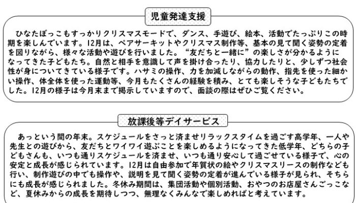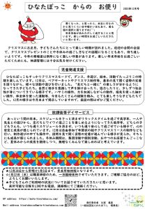 ひなたぼっこからのお便り 12月号です(^^)